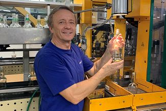 Every day, our employees at the hot end ensure that glowing glass drops are turned into glass containers in flint, green, brown and other colours. And all while creating the perfect form.