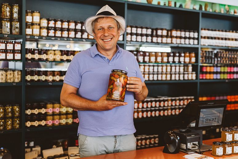 «Les Viennois nous connaissent surtout au travers du Pavillon», explique Stefan Schauer, chez Staud’s depuis 1991 et directeur depuis 2015. La boutique du Brunnenmarkt, dans le quartier d’Ottakring à Vienne, était autrefois un stand de fruits et légumes créé en 1883, à l’époque où l’empereur François-Joseph régnait encore sur la monarchie austro-hongroise. Elle propose l’ensemble de la gamme Staud’s Wien – soit plus de 230 produits sucrés et légèrement acidulés – ainsi que des spécialités de partenaires sélectionnés avec soin. «Les partenariats durables et fondés sur le respect font partie intégrante de notre culture d’entreprise – notamment ceux que nous entretenons avec nos producteurs agricoles. Il est essentiel de préserver, voire de renforcer, l’estime des consommateurs pour les denrées alimentaires de qualité. Aujourd’hui, les gens consacrent en moyenne moins de 10 pour cent de leurs revenus à l’alimentation – contre environ 14 à 15 pour cent il y a encore quelques années», explique Stefan Schauer.